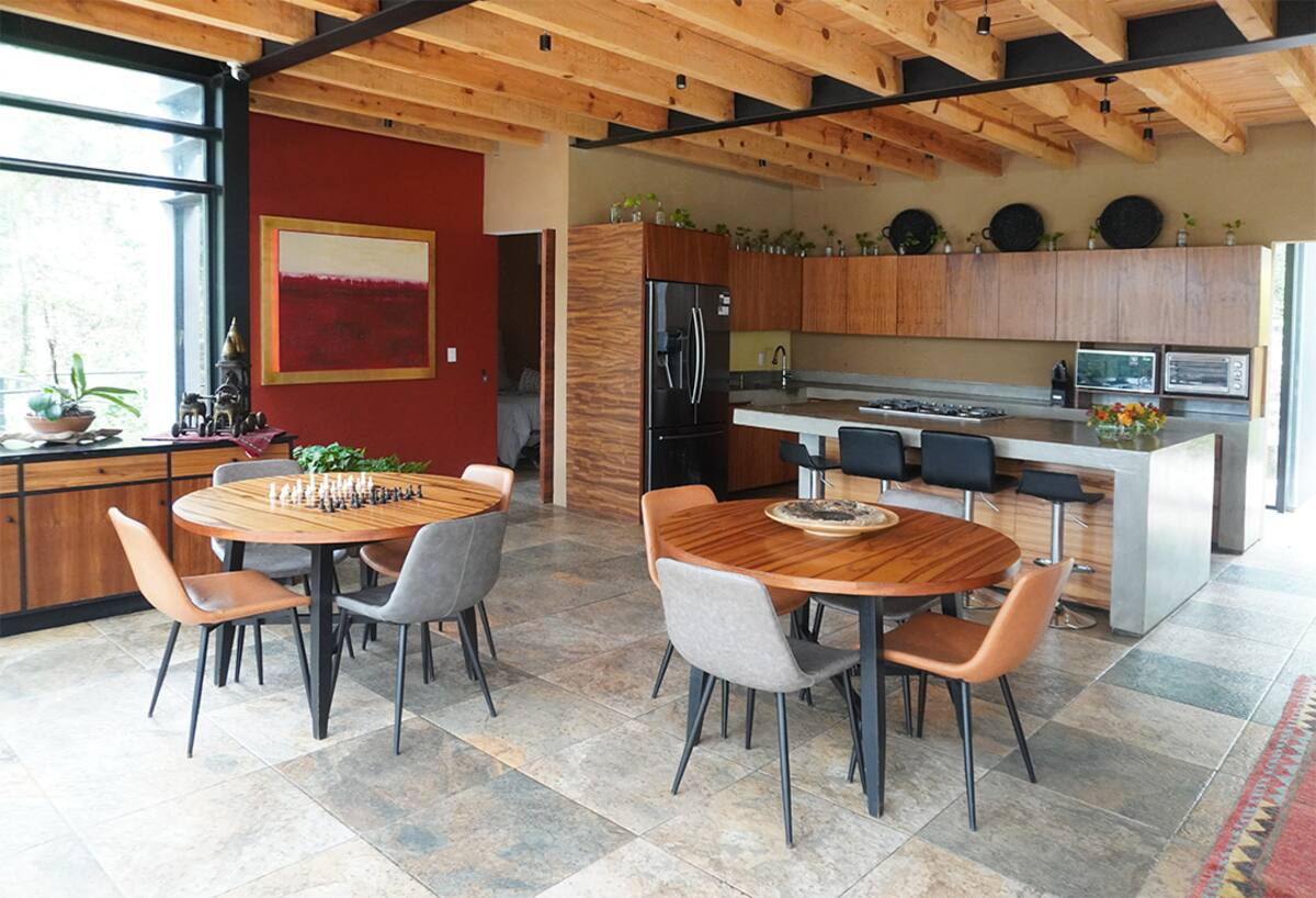 Con un diseño rústico-minimalista, acabados modernos y materiales naturales como parota, teca y chukum, esta casa ofrece un ambiente de total confort y bienestar.