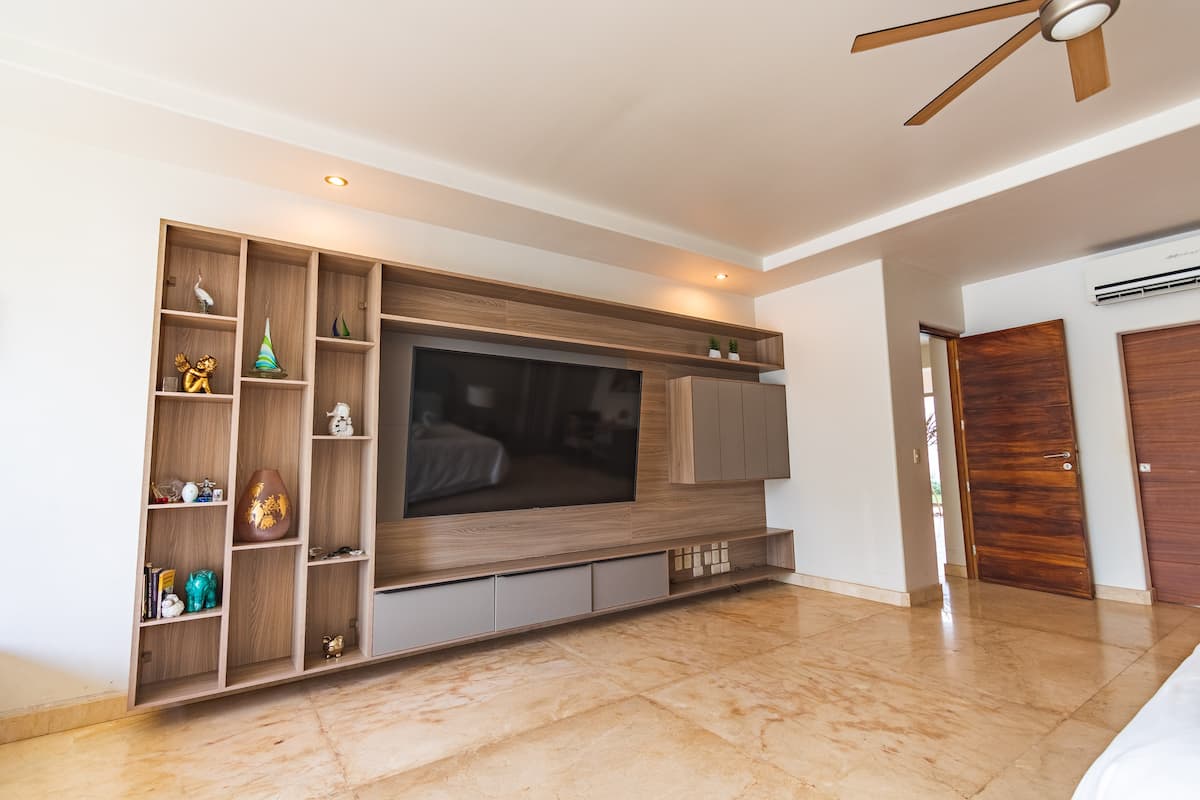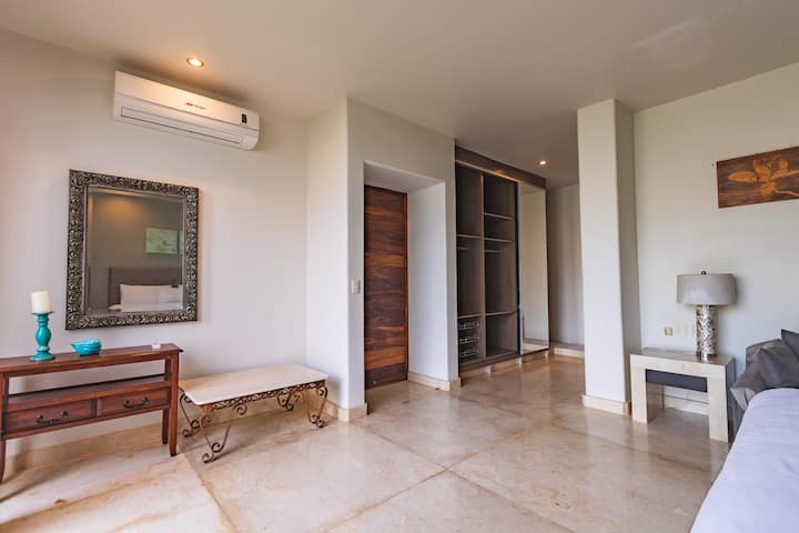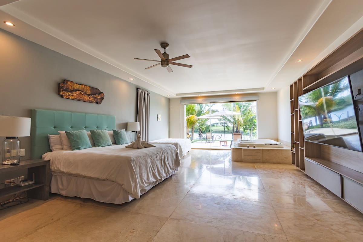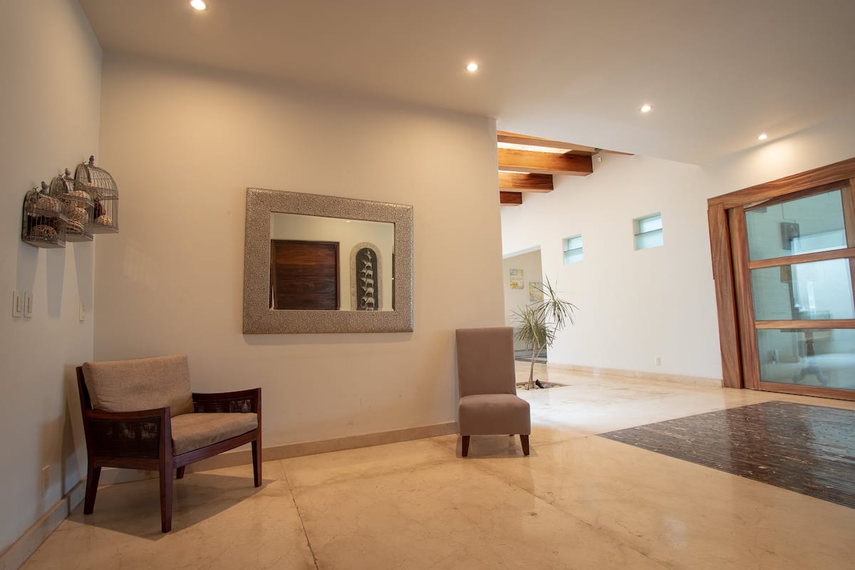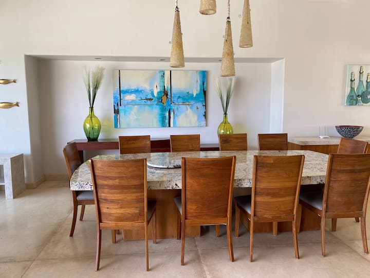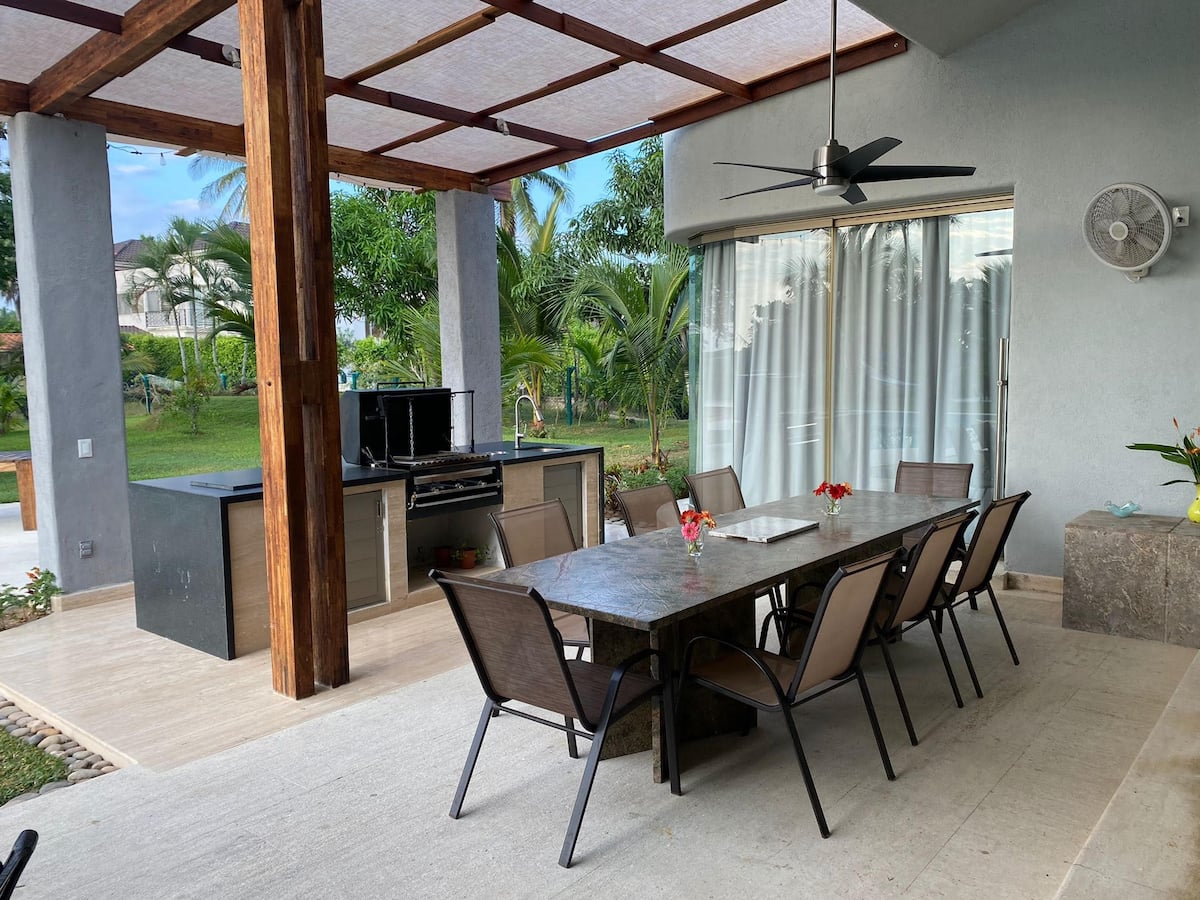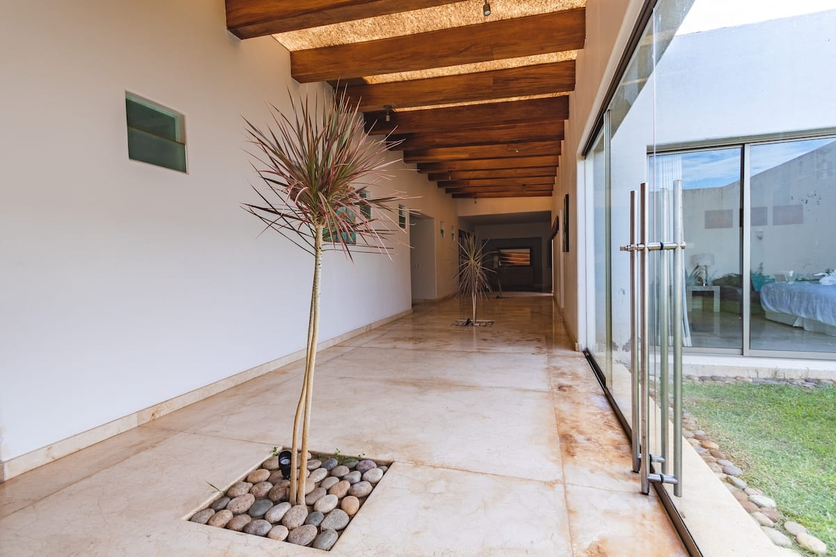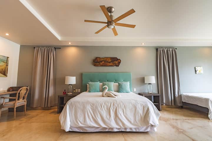 Es una exclusiva residencia de un solo nivel en un terreno de más de 2,000 m² con 1,200 m² de construcción, ideal para hasta 16 personas. Cuenta con alberca, amplias áreas exteriores y una atmósfera sofisticada y tranquila con vistas al lago y al campo de golf. Consta de 5 recámaras, sala de TV con cama adicional, y cada rincón está decorado con elegancia y comodidad. Ubicada en el fraccionamiento más exclusivo de la zona, ofrece seguridad, acceso al mar a pie en solo 10 minutos y espacios perfectos para ejercitarse al aire libre o correr en la playa. También incluye dos bicicletas para paseos. Se recomienda no acercarse ni alimentar a los reptiles del ecosistema local ni ingresar a los lagos interiores.
